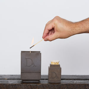 To light your Devetu Aroma candle, slide the sleek, square vessel out of its sturdy rectangular casing. Strike a match on the underside of the casing and enjoy the elegance of a perfectly ignited flame.
